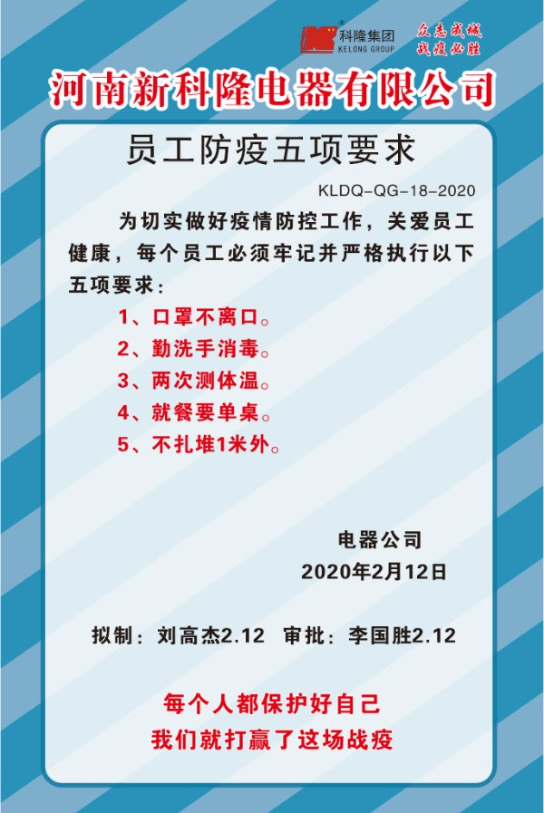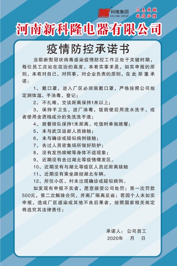 新冠肺炎疫情發(fā)生以來(lái),國(guó)內(nèi)企業(yè)生產(chǎn)經(jīng)營(yíng)發(fā)展受到較大影響,面臨形勢(shì)相當(dāng)嚴(yán)峻。2月8日,國(guó)務(wù)院聯(lián)防聯(lián)控機(jī)制印發(fā)通知,對(duì)切實(shí)加強(qiáng)疫情科學(xué)防控、有序做好企業(yè)復(fù)工復(fù)產(chǎn)工作作出安排部署。為確保科隆集團(tuán)生產(chǎn)經(jīng)營(yíng)和疫情防控工作兩不誤,集團(tuán)各單位快速反應(yīng)、馬上行動(dòng),成立“疫情防控復(fù)工小組”,展開(kāi)復(fù)工和疫情防控專題工作計(jì)劃,努力推動(dòng)企業(yè)恢復(fù)正常生產(chǎn)經(jīng)營(yíng),為社會(huì)經(jīng)濟(jì)發(fā)展提供支撐、做好保障。